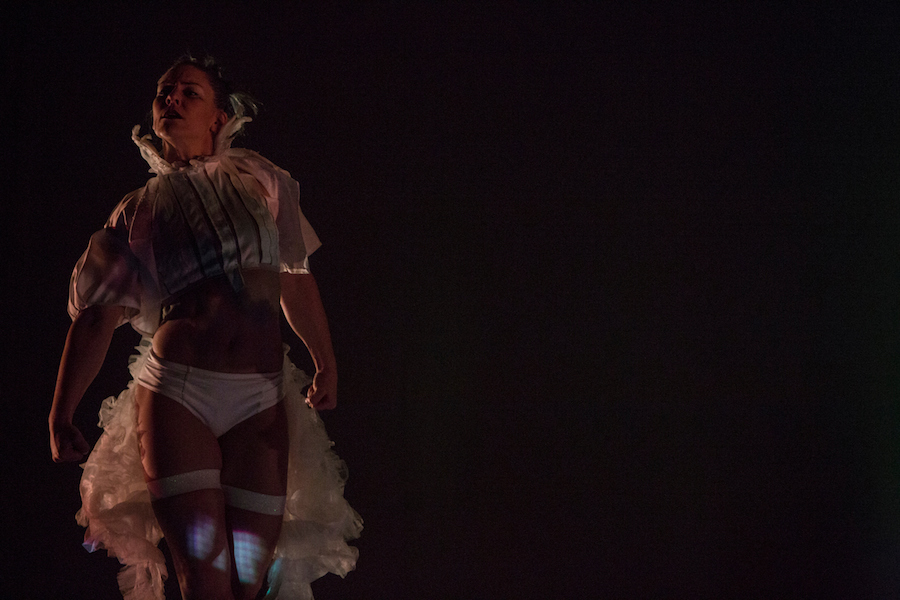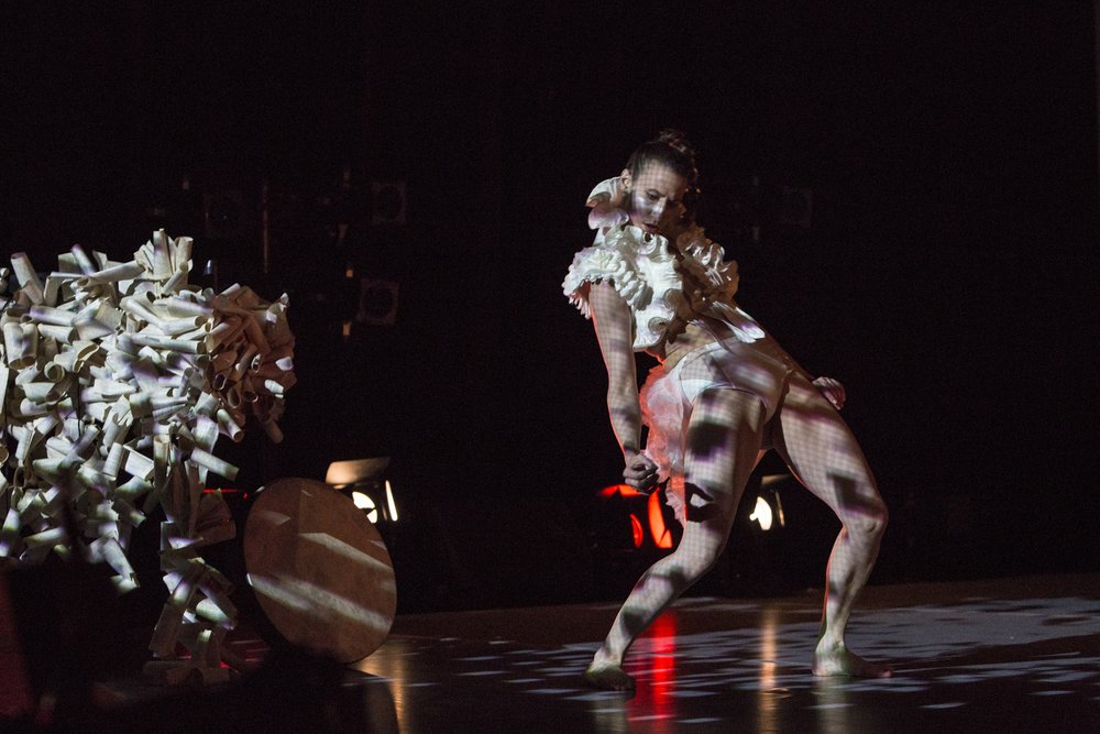 In a neutral black box theatre, music, dance, live cello and voice interact with the audience in a playful design, architecting emotions and creating a space of movement. Choreography: Maya Lewandowsky​