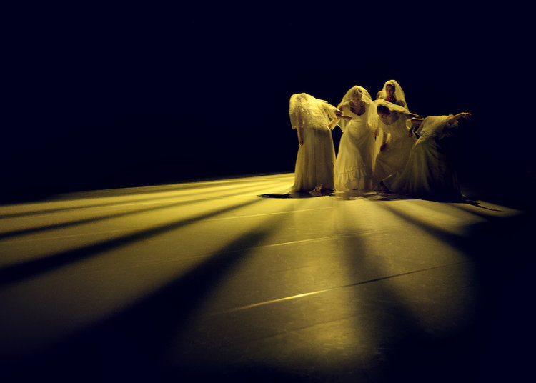 This performance is an adaptation of S. Ansky’s 19th century folk legend, “The Dybbuk.” A woman is given as a bride by her father to an older wealthy business man “an arranged marriage”, however she is in love with her young true love who dies suddenly of a broken heart when he receives this news. On her wedding day, his spirit enters her body to reclaim her. She is empowered by his love to voice her truth and say ‘no’ to family and society’s traditions. This dance opera expresses the themes, emotions and the struggle between the earthly plane and the various spirit realms of the story.​​