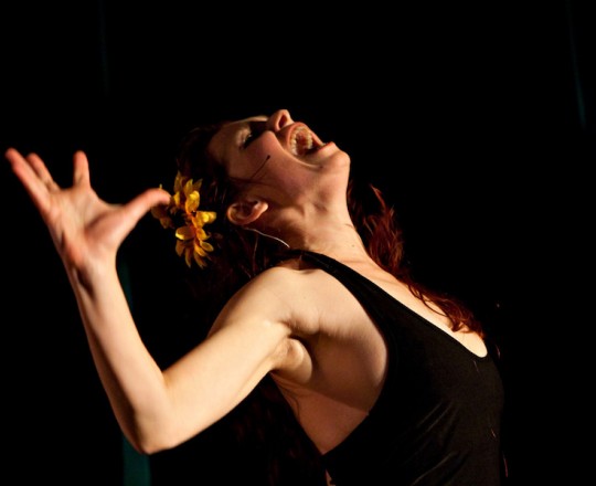 A spontaneous, dramatic and beautiful leap into the space, the stage, the void! The art precedes the artist. She/it takes form before our eyes. She shapes, she speaks, she cries, hollers and dances. She bares all, stripped of the masking faces. The raw lived pain and passion of being a being. Eros, love, the divine mover of mountains and rivers, moves through each of us in her. A song of loneliness and fear pulls out our own passionate plea to fully live it all, and survive the pilgrimage. And so transmute the suffering into the freeform of us in communion. We walk out breathless with catharsis and awe.